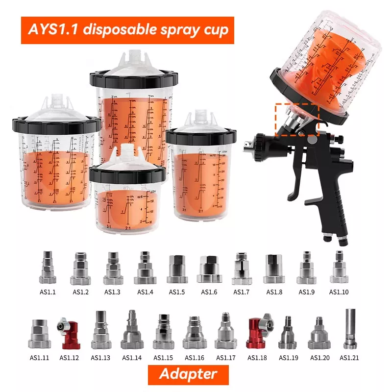 ຈອກສີດພົ່ນທີ່ຖິ້ມໄດ້ AYS1.1 ແມ່ນເຂົ້າກັນໄດ້ກັບອະແດບເຕີຊຸດ PPS1.0. ດ້ວຍຕົວອະແດບເຕີ, ມັນສາມາດປັບຕົວໄດ້ຢ່າງສົມບູນກັບທຸກຍີ່ຫໍ້ຂອງປືນສີດແລະສາມາດຖືກນໍາໃຊ້ໃນຕໍາແຫນ່ງໃດກໍ່ຕາມໂດຍບໍ່ມີຄວາມສ່ຽງຕໍ່ການຕົກສີ.
