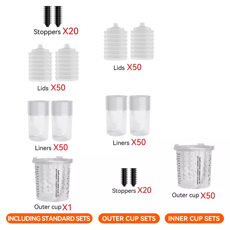 ຈອກປືນສີດທີ່ຖິ້ມໄດ້ໃຫ້ທາງເລືອກຄວາມອາດສາມາດທີ່ຫຼາກຫຼາຍ (ລວມທັງ 200ml, 400ml, 650ml, 850ml), ເຊິ່ງສາມາດຕອບສະຫນອງຄວາມຕ້ອງການສີດທີ່ແຕກຕ່າງກັນຈາກການສ້ອມແປງ 1 ກະດານເຖິງການສ້ອມແປງ 4 ແຜງແລະຫຼຸດຜ່ອນຄວາມຖີ່ຂອງການປ່ຽນຈອກ.