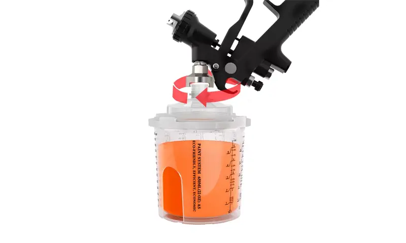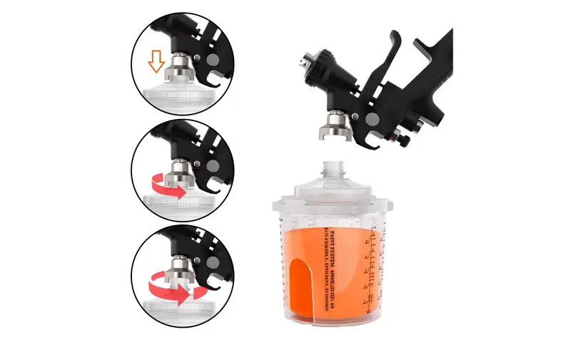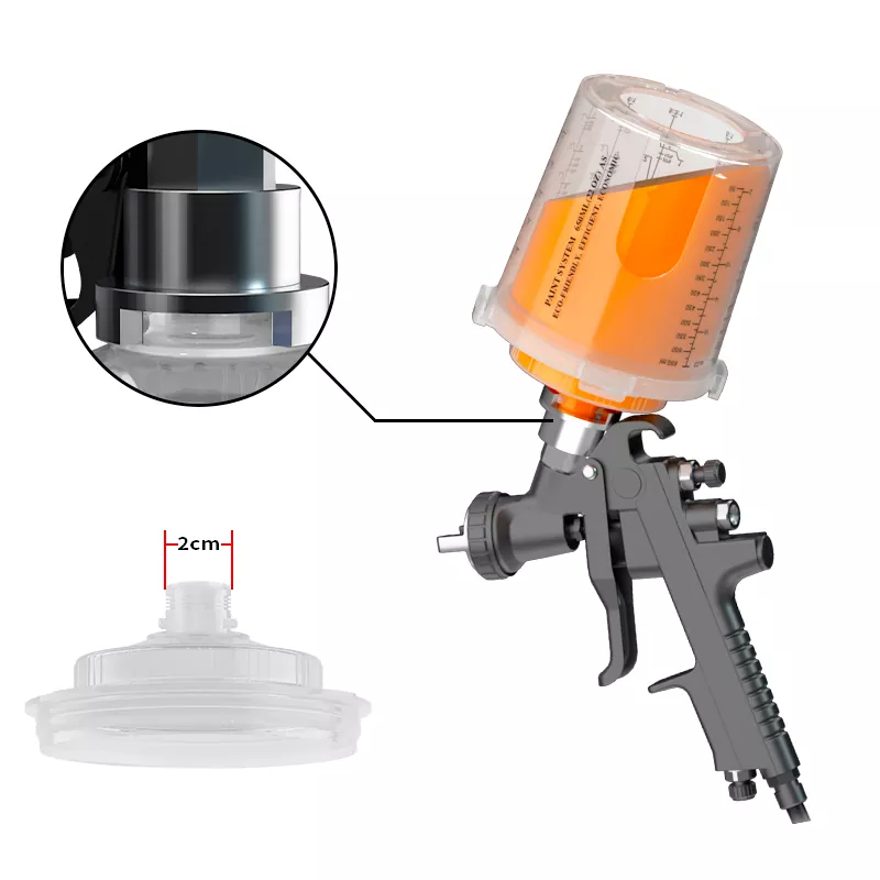 ການອອກແບບ buckle ປະສົມປະສານຂອງ spout ຈອກສີດຖິ້ມໄດ້ເຊື່ອມຕໍ່ອະແດບເຕີໄດ້ແຫນ້ນຫຼາຍ, ເຊິ່ງຊ່ວຍປັບປຸງຄວາມຫມັ້ນຄົງຂອງການເຊື່ອມຕໍ່ລະຫວ່າງຖ້ວຍສີດແລະປືນສີດ. ໃນເວລາດຽວກັນ, ເສັ້ນຜ່າກາງຂອງ spout ຈອກໃຫຍ່ເຮັດໃຫ້ການລະບາຍສີໄດ້ໄວຂຶ້ນແລະມີຄວາມສອດຄ່ອງຫຼາຍ, ເຊິ່ງຊ່ວຍປັບປຸງການສີດພົ່ນຢ່າງຫຼວງຫຼາຍ.