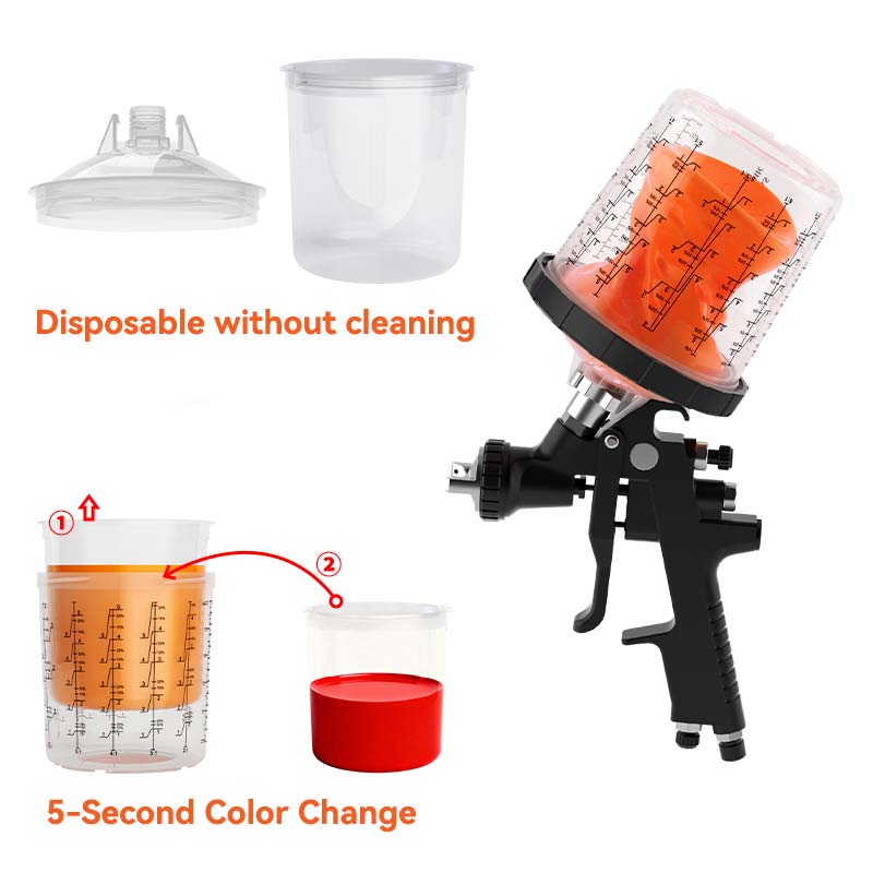 ໄດ້ເຕະບານປືນຖິ້ມຖິ້ມ ບໍ່ຈໍາເປັນຕ້ອງເຮັດຄວາມສະອາດຫລັງຈາກໃຊ້; ພຽງແຕ່ປະຖິ້ມຈອກໃນເພື່ອປ່ຽນສີໃຫ້ໄວ, ຫຼຸດຜ່ອນໄລຍະຫ່າງປ່ຽນສີຈາກເວລາ 20 ນາທີເຖິງ 5 ວິນາທີ, ມີປະສິດຕິຜົນຫຼາຍເທົ່ານັ້ນການຜະລິດປະຈໍາວັນ. ຝາປິດມີຕົວກອງທີ່ດີທີ່ສ້າງຂື້ນໃນການກັ່ນຕອງທີ່ບໍ່ມີປະສິດຕິຜົນ, ຮັບປະກັນການສີດທີ່ເປັນເອກະພາບແລະລຽບ, ສົ່ງຜົນໃຫ້ມີຈຸດສໍາເລັດທີ່ມີຄຸນນະພາບ.