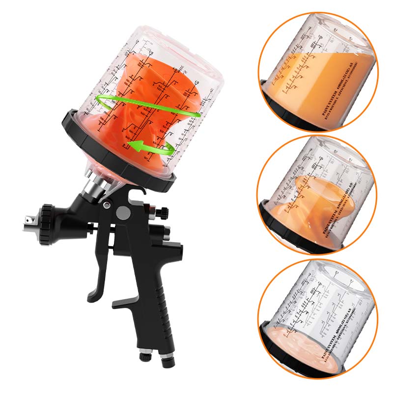 ເຕັກໂນໂລຢີອະພິສິດ vortex: ການອອກແບບຖ້ວຍທີ່ມີປະດິດສ້າງເຮັດໃຫ້ມີສ່ວນທີ່ເຮັດໃຫ້ສີສັນເປັນປົກກະຕິຫຼາຍຂື້ນ, ຫລີກລ້ຽງການມ່ານຜົມແລະເປືອກສີສົ້ມຂອງປືນສີດແບບດັ້ງເດີມ. ນີ້ຊ່ວຍປັບຂະຫນາດຄຸນນະພາບຂອງການສີດແລະເພີ່ມອັດຕາການນໍາໃຊ້ສີໃຫ້ຫຼາຍກ່ວາ 85%.