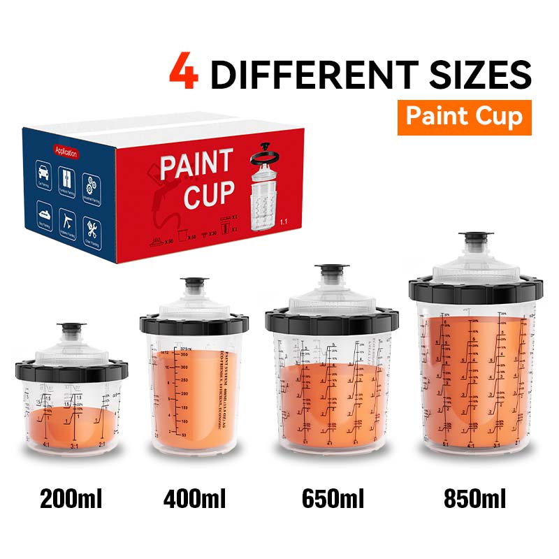 ອີງໃສ່ການຄົ້ນຄ້ວາການຕະຫຼາດ, ຈອກທາສີມີຢູ່ໃນສີ່ສະເພາະດ້ານຄວາມສາມາດ: 200ml, 400ml, 650ml, ອາຫານ 850ml, ເກັບຮັກສາສະຖານະການການນໍາໃຊ້ທີ່ແຕກຕ່າງກັນຫຼືສໍາຜັດກັບພື້ນທີ່. ນອກຈາກນັ້ນ, ໂຄງປະກອບເຕະບານພາຍໃນໄດ້ຮັບການປັບປຸງເພື່ອຮັບປະກັນການໄຫຼທີ່ລຽບ, ຫຼຸດຜ່ອນການອຸດຕັນແລະສິ່ງເສດເຫຼືອ.